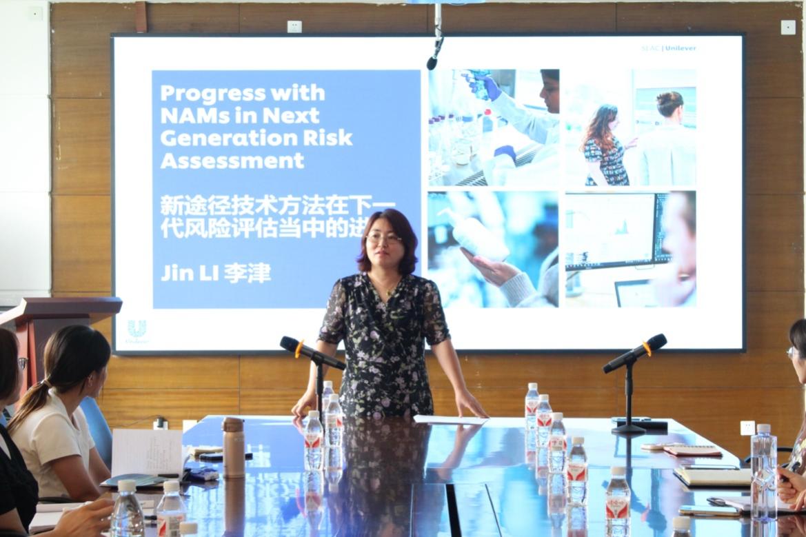李津博士围绕安全风险评估相关基本概念、新途径方法在下一代风险评估中的应用等,结合国内外最新发展现状及趋势,为师生详细介绍了下一代风险评估在化学品尤其是化妆品安全评价领域中的应用情况和未来发展方向。他指出,欧盟已明确,到2030年化妆品行业安全风险评估严禁使用动物模型,因此随着毒理学替代法的广泛应用,基于计算毒理学及数据分析模型的化学物安全风险评估将会是未来毒理学的研究重点。此外,李津还介绍了联合利华的基本情况,鼓励学生们要加强学术交流,开阔科研视野和就业视野。报告结束后,师生与李津博士进行了深入的交流和讨论。