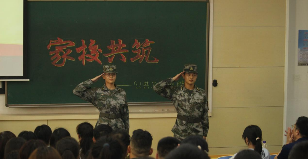 会议第四项议程为军训教官见面会。在学生教官见面仪式上,两位军训教官王留宝和许墨轩分别进行了自我介绍,鼓励全体新生在接下来的军训过程中以昂扬向上的姿态面对此次军训,遵守纪律,团结协作,并期待新生取得优异成绩。
