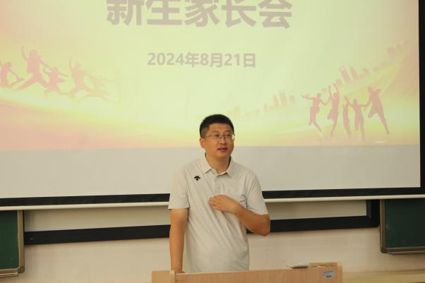 会议首项议程为学院党总支书记于泳发表讲话。他对新生及家长的到来表示热烈的欢迎,同时,对同学们提出了几点要求:第一,要志存高远,树立远大而崇高的理想,让梦想成为照亮前行道路的明灯;第二,要勤奋学习,广泛涉猎,不断提升自我,为未来的挑战奠定坚实的基础;第三,要勇于实践,敢于担当,在实践中锻炼能力,增长才干,成为社会的有用之才;第四,要修身立德,注重个人品德修养,树立正确的道德观念和价值取向。最后,于泳书记向新生家长传达了家校合力共同促进学生成长成才的愿景,并希望同学们都能成为德智体美劳全面发展的新时代青年。