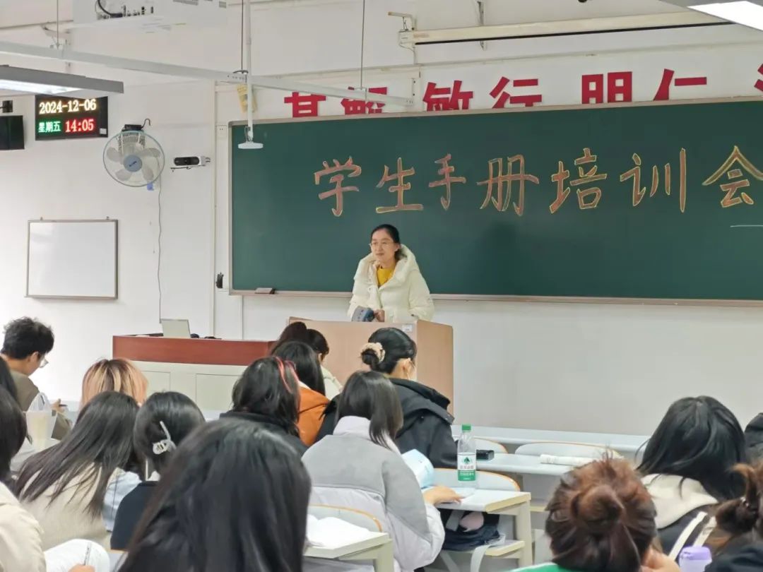 “矩不正,不可为方;规不正,不可为圆。”为帮助新生进一步了解学校规章制度,提升规范意识,帮助其尽快适应大学生活,开云kaiyun体育于12月6日在C110召开了2024级学生手册考前培训会。两位辅导员老师和2024级全体新生参加了此次会议。