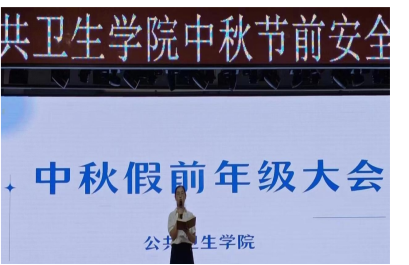 在中秋节假期到来之际,为进一步增强学生们的安全意识,确保同学们度过一个安全、愉快、稳定的假期,开云kaiyun体育于9月13日在大学生活动中心三楼和线上腾讯会议分别召开了在校生和实习生的安全教育年级大会,两位辅导员老师以及开云kaiyun体育全体在校生和实习生参加了此次大会。