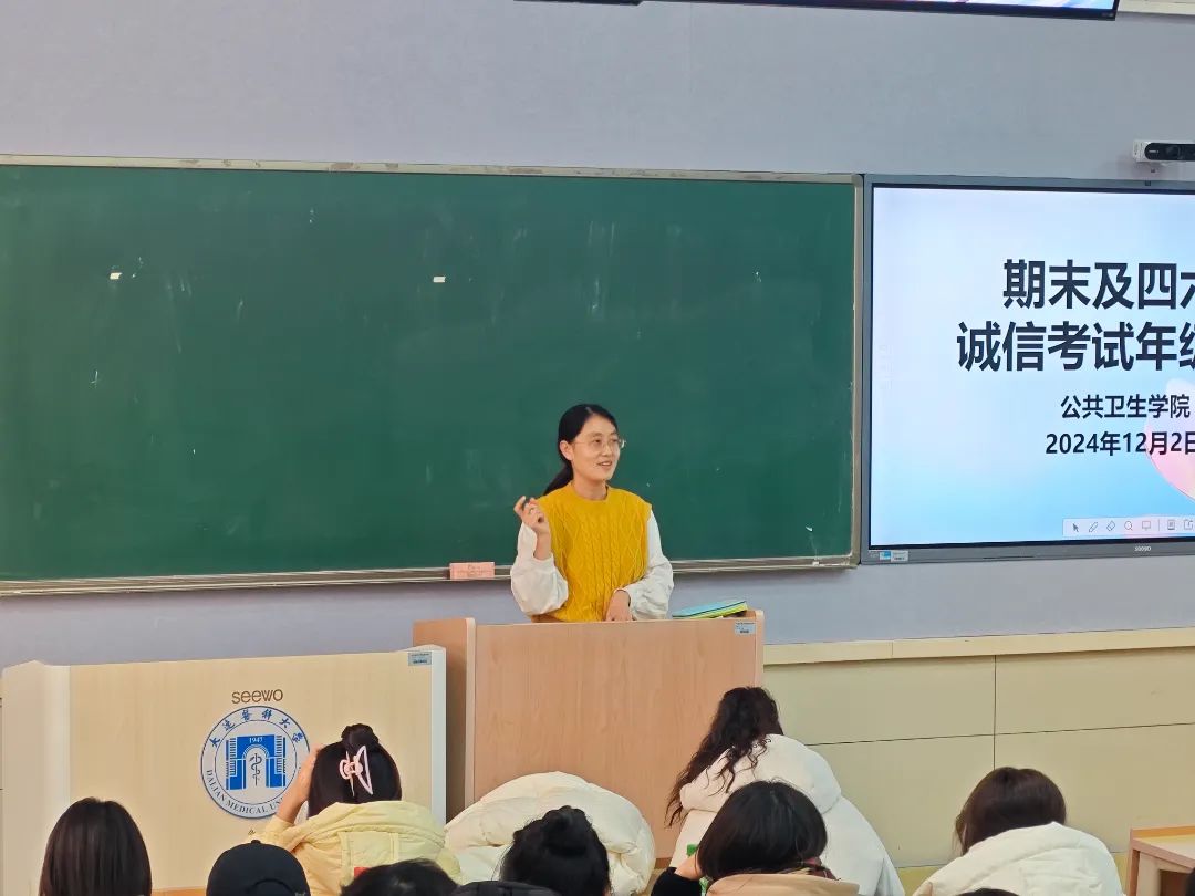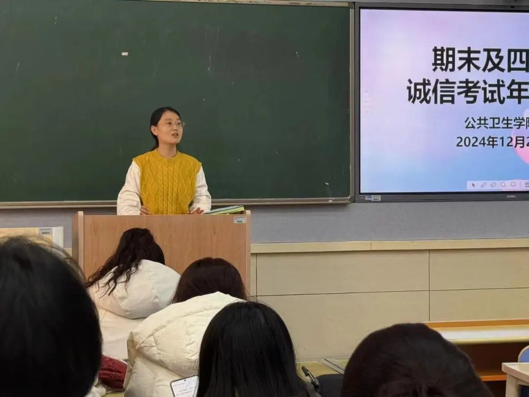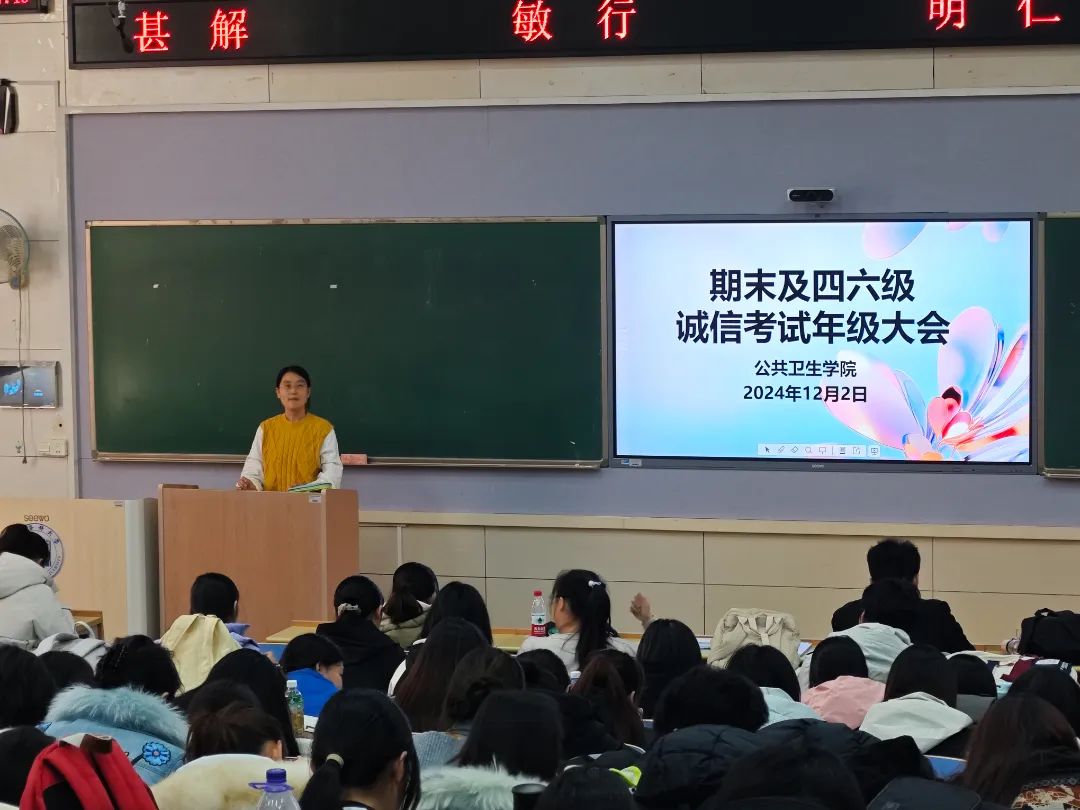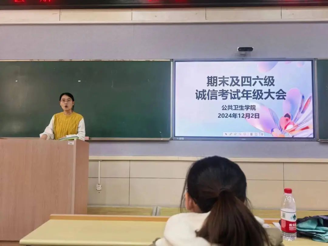 为进一步加强学院学风建设,引导学生树立诚信应考的价值观,营造良好的考试氛围,开云kaiyun体育于12月2日在A205教室召开期末及四六级诚信考试年级大会,两位辅导员老师及全体在校生参加了此次大会。