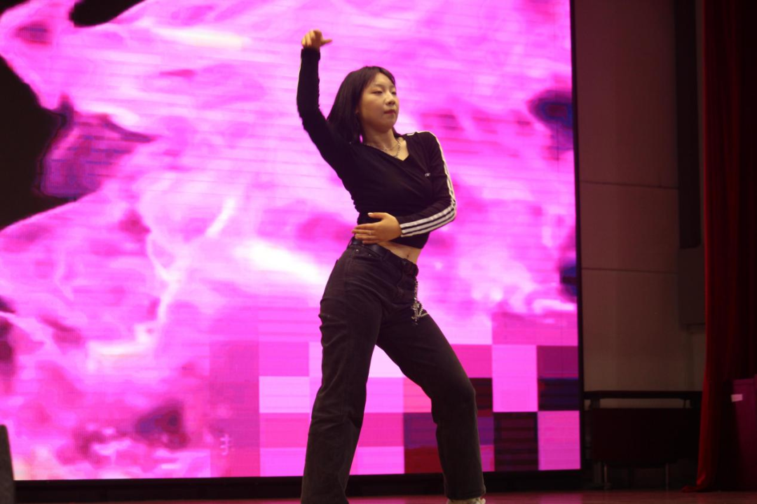 2022级预防专业蒲静媛、2024级管理专业刘夏美惠与校舞士堂成员左一涵、李烁联袂献上的舞蹈《shhh》堪称一场视觉盛宴。她们的舞姿优雅而富有力量,宛如夜空中绚烂绽放的烟花,瞬间点燃了整个晚会的气氛,将观众带入了一个充满热情与活力的世界。