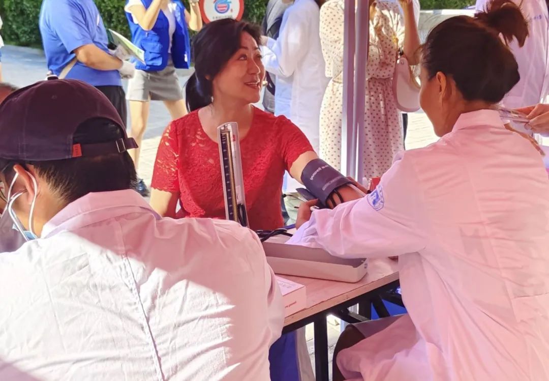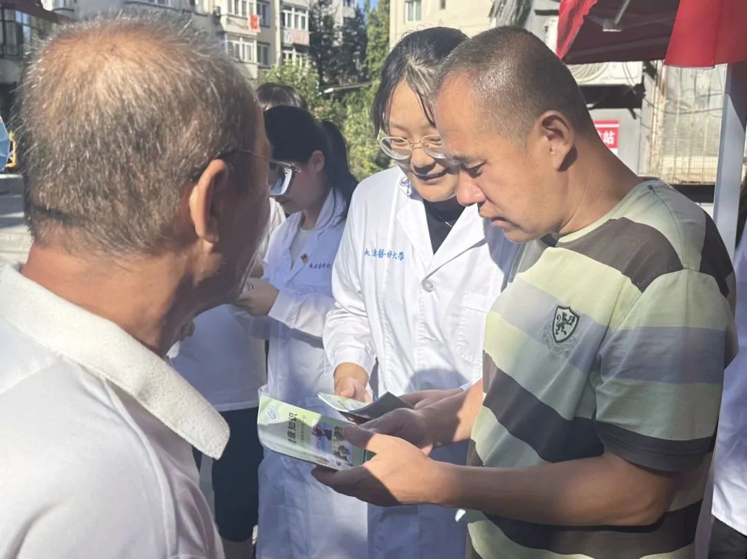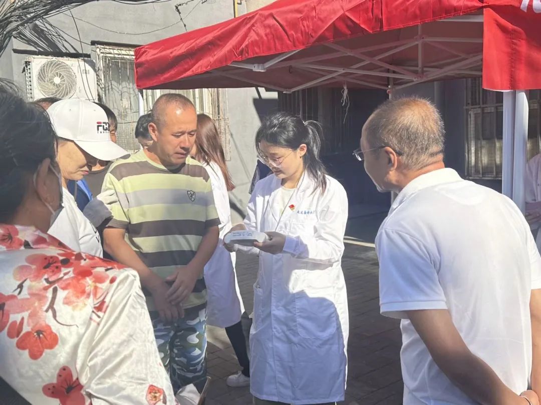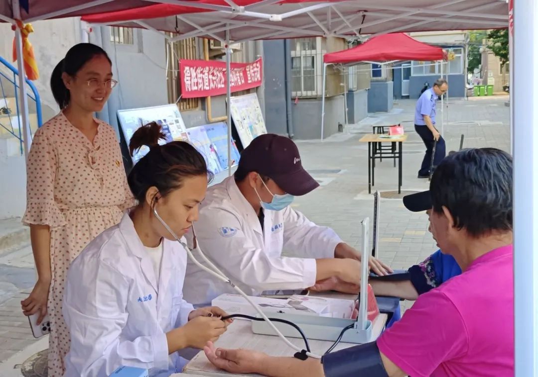 活动现场,学生党员及入党积极分子为社区居民进行健康义诊,给广大居民测量了血压和体脂,分发了预防疾病知识宣传手册。