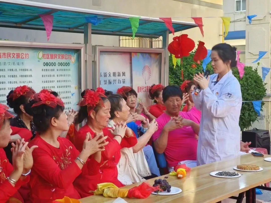 为了提高居民们的积极性,同学们准备了轻松有趣的手指操和健康知识有奖问答节目。在手指操的教学过程中,居民们表现出了极高的兴趣。健康知识问答环节的内容涉及生活的方方面面,比如生活中的健康常识、海姆立克急救法等,在轻松愉快的氛围中完成了知识的传递。