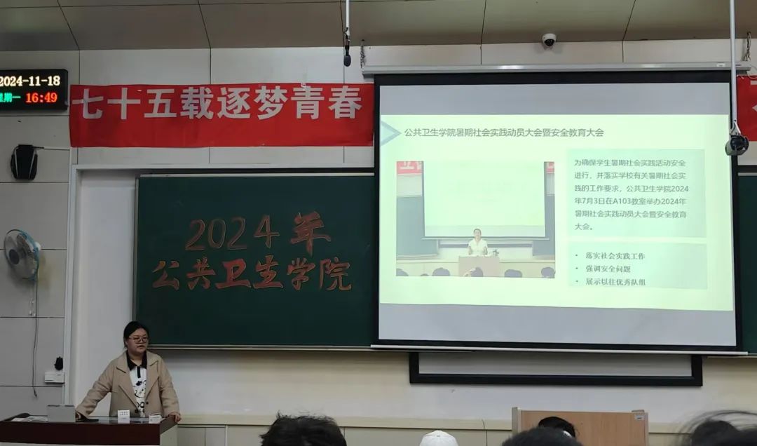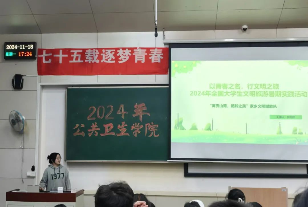 为培养同学们的社会责任感和担当意识,进一步将个人能力与社会需要紧密结合。开云kaiyun体育于2024年11月18日举办“七十五载逐梦青春,万千跬步践悟征程”2024年暑期社会实践成果展活动。两位辅导员老师,学院学生会各部门负责人及开云kaiyun体育2023、2024级全体同学参加了本次活动。