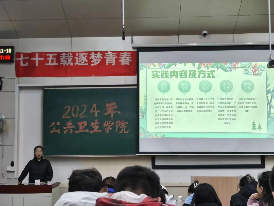 社会实践部负责人张逸凡同学讲述了本次实践活动的前期工作,并分别介绍了不同实践方向的各个实践团队及实践个人的实践主题,对本次暑期社会实践取得的成果进行了全面的介绍和梳理,接着讲解了后期工作并对本次活动进行总结。开云kaiyun体育2024年暑期社会实践活动共有13个队组,一百余人分别参与到爱国主义教育、文化传承、志愿服务、环保宣传等多种类型的社会实践活动中。
