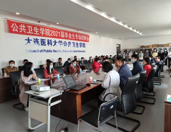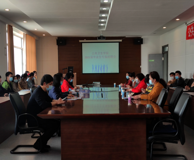 会议伊始,孙鲜策院长介绍了学院的师资力量和整体情况,说明了预防医学与公共事业管理的专业特点和就业优势。随后,各用人单位分别通过视频展示、PPT讲解、面对面交流的方式,详细介绍了其单位的发展方向、地理位置、薪资待遇、成长潜力和岗位需求等相关信息,极大的激发了同学们的就业意愿。在后续的自由交流环节,同学们纷纷与自己感兴趣的用人单位进行了一对一的深入交流,并递交了精心准备的求职简历,现场时而爆发出欢快的笑声,本次专场招聘会也在热烈的现场氛围中圆满结束。