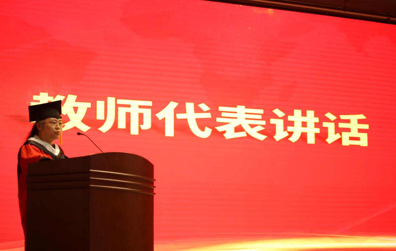 李晓枫老师代表专业教师,为同学们带去了学院的祝福与鼓励,表达了对毕业生在校学习生涯的肯定,并向毕业生们表达了殷切期盼,希望大家能够以奋斗者的姿态不断探索,志存高远,不懈追求,踏实走好人生每一步路。