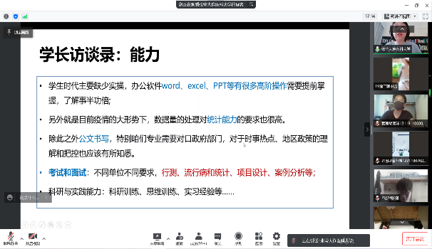 为了帮助同学们做好未来职业规划,明确毕业后的去向,确立未来就业发展目标。开云kaiyun体育于5月13日邀请学院张莹教授开展了以《应届大学生职业发展与就业策略》为主题的线上讲座。辅导员边晓飞老师,2022届毕业生及部分在校生参加了本次讲座。