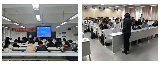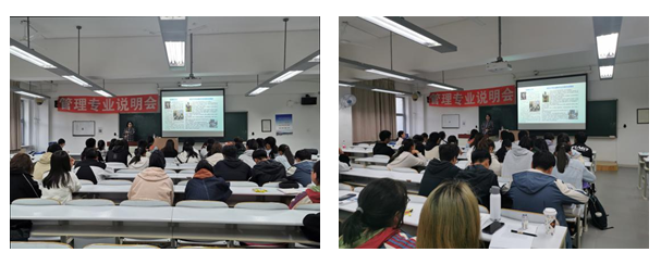 活动伊始,张莹教授首先询问了同学们的未来规划,在她的鼓励下,同学们积极发言,踊跃表达着自己的想法,本次专业说明会在轻松融洽的氛围中展开。随后,张莹教授向同学们简要介绍了公共事业管理专业主要课程以及学校的教学资源及培养目标。针对学生关心的考研与就业问题做出悉心指导,她引用风趣幽默的比喻,使同学们了解了在大学的四年中应掌握的基础理论知识与能力。此外,她为同学们展示了毕业生寄语,优秀毕业生分享的学习经验以及对就业方向的指导使同学们受益匪浅。张莹教授还耐心为同学答疑解惑。