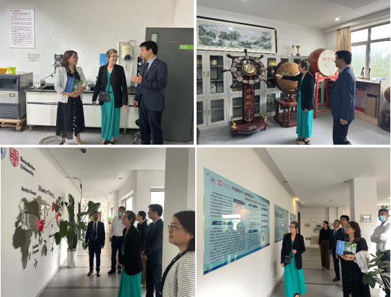 会见结束后,Katherine Lang博士在开云官网开云kaiyun体育领导的陪同下参观了开云kaiyun体育,深入了解了开云官网在公共卫生教学与科研方面的发展和成果。孙鲜策院长首先向Katherine Lang博士介绍了学院发展概况,并领其参观了学院教研室和实验室;随后,孙院长介绍了中美合作MPH项目的发展历程,并展示了往届中美合作MPH项目毕业生向学院的赠礼。Katherine Lang博士对完善的教学设施、科研环境表示赞赏,并期待未来有更多的合作机会,共同推动公共卫生教育的国际化发展。