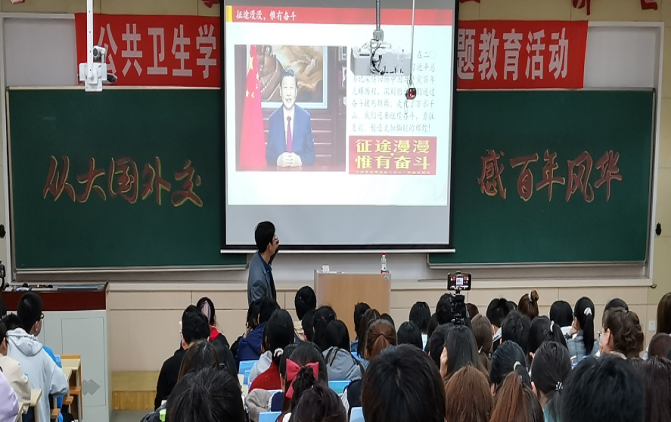 随后,通过对比120年前丧权辱国的“辛丑条约”和外交失败的巴黎和会,再次诠释了弱国无外交的惨痛教训,并从大国成长的“大历史”出发,细说新中国赢得生存的“革命外交”、谋求发展的“发展外交”和走向强大的“复兴外交”三个外交阶段。回首新中国72年的辉煌历程,见证着中国共产党带领全国人民应对外部世界挑战,求生存、求发展、求复兴的筚路蓝缕、砥砺奋进,深入感受中国共产党人的初心如磐、使命如山。最后,以习近平总书记在2021年新年贺词中的“征途漫漫,惟有奋斗”激励同学们坚定不移听党话,跟党走,以先辈为榜样,以英雄为楷模,仰望星空,脚踏实地,不负历史使命,坚持不懈奋斗,继续向着实现中华民族伟大复兴的光辉目标昂扬进发。