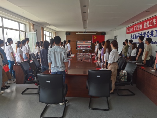 观看庆祝中国共产党成立100周年大会直播时,全体党员凝神聚气,与天安门前广大参会人员一起肃立,共同奏唱了《中华人民共和国国歌》,认真听取了各民主党派、工商联和无党派人士的联合致贺词以及共青团员和少先队员代表的集体致献词,聆听了习近平总书记发表的重要讲话。